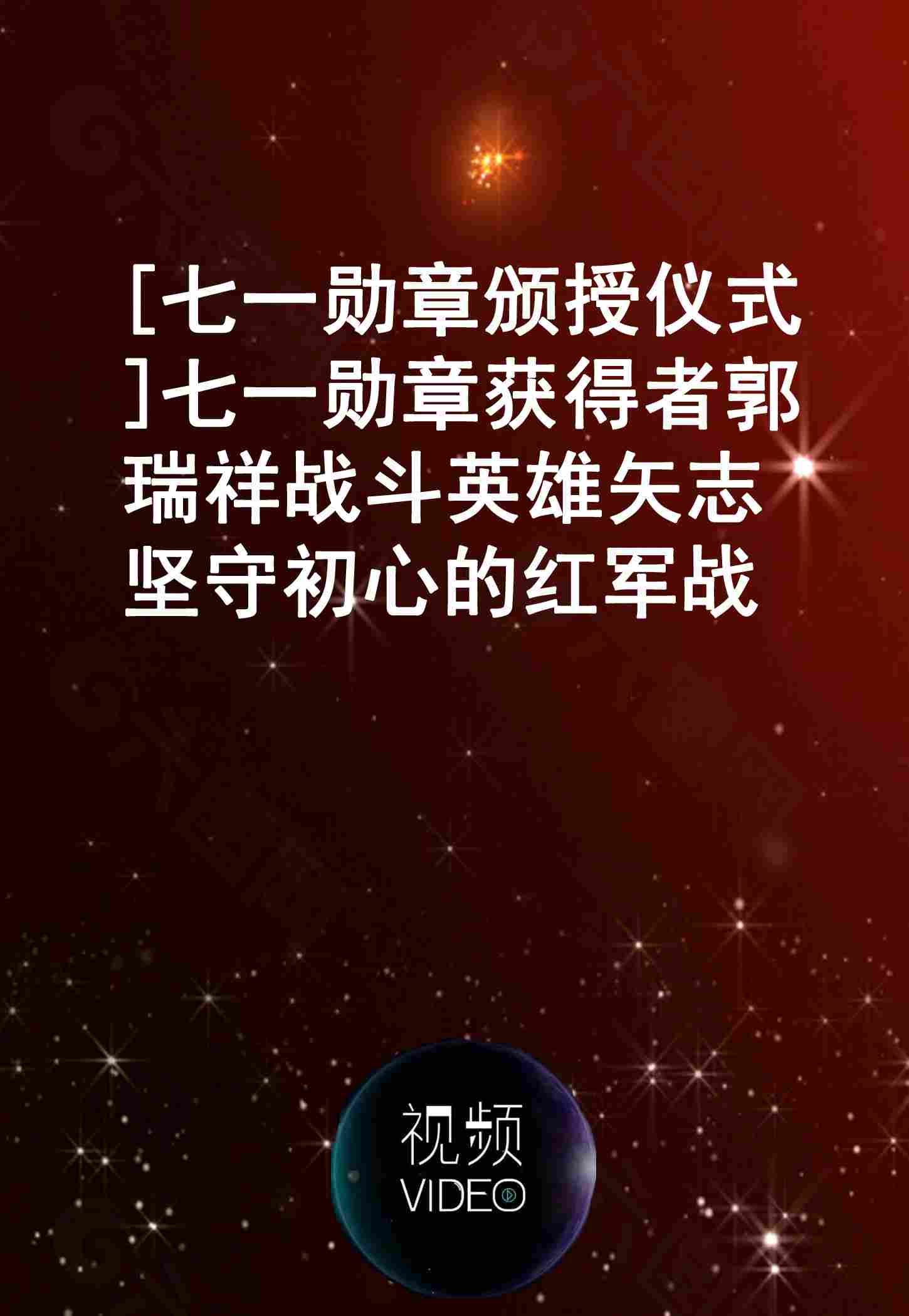 [“七一勋章”颁授仪式]“七一勋章”获得者 郭瑞祥 战斗英雄 矢志坚守初心的红军战士