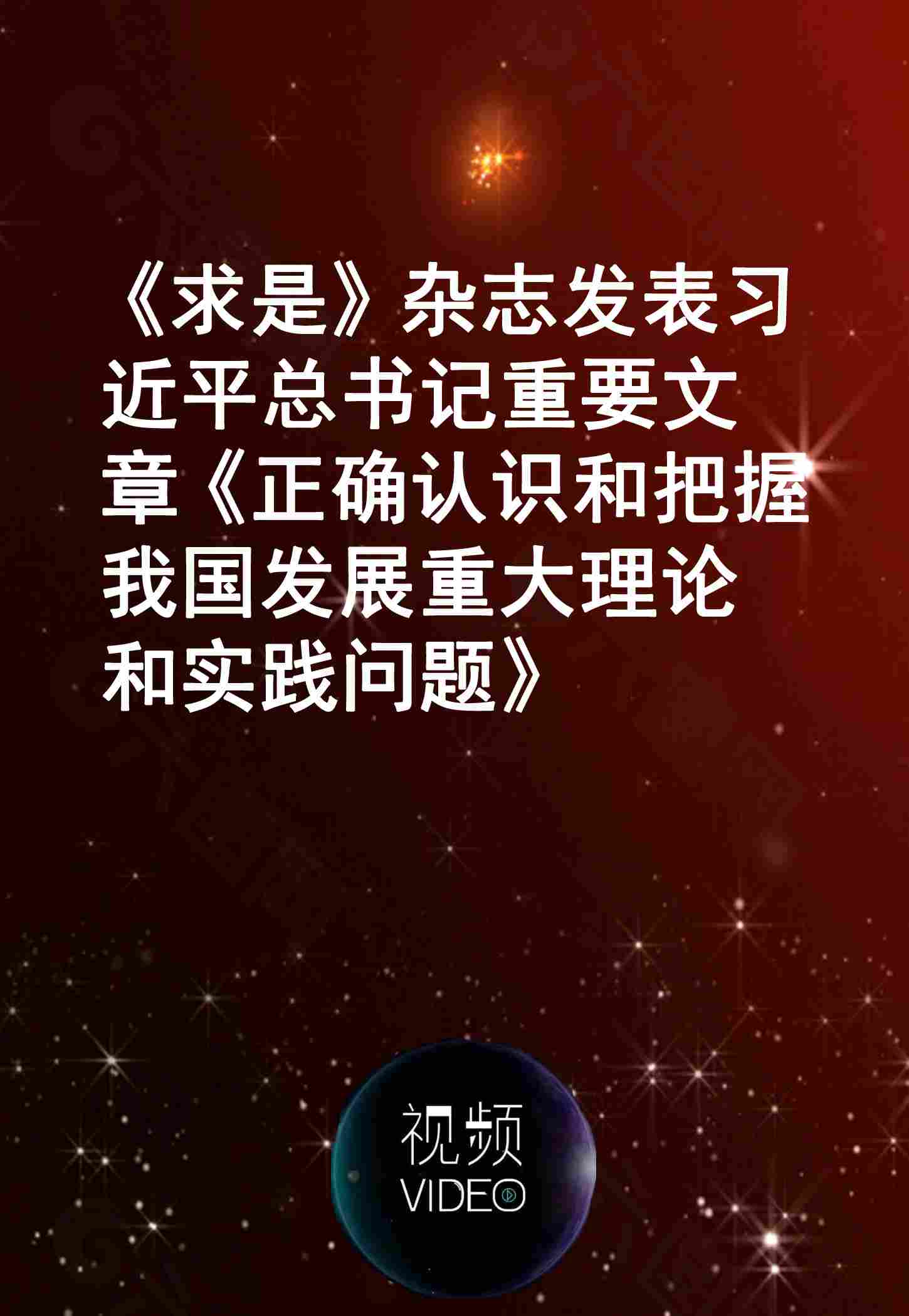 《求是》杂志发表习近平总书记重要文章《正确认识和把握我国发展重大理论和实践问题》