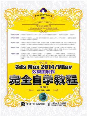 《中文版3ds Max 2014/VRay效果图制作完全自学教程(第2版)》是一本详细介绍3ds Max 2014/VRay基本功能及各种常见效果制作的书。本书针对零基础读者开发,是入门级读者快速、全面掌握3ds Max 2014/VRay效果图制作的参考书。 《中文版3ds Max 2014/VRay效果图制作完全自学教程(第2版)》从3ds Max 2014基本操作入手,结合大量的可操作性实例(181个实战+11个大型综合实例),全面、深入地阐述3ds Max 2014/VRay的建模、灯光、摄影机、材质、环境和效果、渲染和后期处理等方面的技术。 《中文版3ds Max 2014/VRay效果图制作完全自学教程(第2版)》共17章,每章分别介绍一个技术板块的内容,讲解过程细腻,实例丰富,通过丰富的实战练习,读者可以轻松、有效地掌握软件技术。 《中文版3ds Max 2014/VRay效果图制作完全自学教程(第2版)》讲解模式新颖,非常符合读者学习新知识的思维习惯。本书附带下载资源,内容包括书中所有实例的实例文件、场景文件、贴图文件、多媒体教学录像(共192集)以及1套3ds Max 2014的专家讲堂(共160集),同时还准备了500套常 用单体模型、5套CG场景、15套效果图场景、5000多张经典贴图和180个高动态HDRI贴图赠送给读者,读者可通过在线方式获取这些资源,具体方法请参看本书前言。另外还为读者精心准备了中文版3ds Max 2014快捷键索引、效果图制作实用附录(内容包括常用物体折射率、常用家具尺寸和室内物体常用尺寸)和60种常见材质参数设置索引,以方便读者学习。 《中文版3ds Max 2014/VRay效果图制作完全自学教程(第2版)》非常适为3ds Max初、中级读者的入门及提高参考书,尤其是零基础读者。另外,本书所有内容均采用中文版3ds Max 2014、VRay 2.30.01编写,请读者注意。