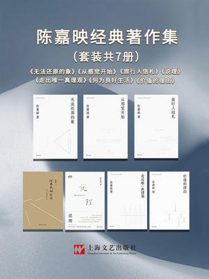 “陈嘉映经典著作集”包括4部学术随笔,2部专著,1部游记。 《无法还原的象》 陈嘉映经典学术随笔。 我们这代人有过什么呢?我们这代人还有什么呢?我们只有精神。于是我们在这里相会了。 《从感觉开始》 陈嘉映经典学术随笔。 世界在感觉里,感觉又在哪里? 真正的理解里也总有不曾完全明了的东西,清明的理解连到更深的暧昧处。 《旅行人信札》 哲学家陈嘉映的中国游记。 1981年29岁的陈嘉映从春天启程历时两个月,壮游半个中国,以25封家信写出行旅中的见闻与思考。 《何为良好生活:行之于途而应于心》 本书呈现了作者对哲学中与我们生活最切近的伦理学诸问题的深入思考和明晰论述。 《走出唯一真理观》 本书是陈嘉映先生选编自己于2007-2018年间所作演讲、访谈与评论结集。 《说理》 哲学通过说理达乎道。 说理并非只是展示逻辑的强制力了事,说理需要与向之说者的自我连起来。深刻的道理要透达人心。 《价值的理由》 陈嘉映先生的思想随笔集,包括名篇《救黑熊重要吗?》《哲人不王》等。
