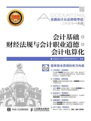 《全国会计从业资格考试三科连考一本通??会计基础+财经法规与会计职业道德+会计电算化》是以财政部新版《会计从业资格考试大纲》为依据,在多年研究该考试命题特点及解题方法的基础上编写而成的。《全国会计从业资格考试三科连考一本通??会计基础+财经法规与会计职业道德+会计电算化》特设“考纲分析与应试策略”,对新版考试大纲做了深入的解读与分析,并总结、提炼了考试重点,同时提供全面的复习、应试策略。为方便考生学习,本书按3个考试科目分3部分进行讲解。其中,第一部分为“会计基础”,分章讲解了会计基础知识、会计要素与会计等式、会计科目与账户、会计记账方法、借贷记账法下主要经济业务的账务处理、会计凭证、会计账簿、账务处理程序、财产清查以及财务报表;同时,专设一章讲解跨章节的计算分析题。第二部分为“财经法规与会计职业道德”,分章讲解了会计法律制度、结算法律制度、税收法律制度、财政法规制度和会计职业道德;同时,专设一章讲解跨章节的案例分析题。第三部分为“会计电算化”,分别讲解了会计电算化基础知识、会计软件的运行环境、会计软件的应用和电子表格软件在会计中的应用等内容。每一部分的考点讲解均从考点分析、考点精讲与典型例题展开,并提供相应的真题演练。 《全国会计从业资格考试三科连考一本通??会计基础+财经法规与会计职业道德+会计电算化》配套的题库版模拟练习光盘提供“考试指南”“考试大纲”“章节练习”“题型精练”“模拟考场”“PPT课件”和“错题重做”等内容。其中,“模拟考场”提供无纸化模拟考试系统,并具有三科连考的功能,其“会计电算化”科目中的“实务操作题”采用的是财政部实务操作题环境,可供全国各地参加无纸化考试的考生进行实战演练。本书既适合全国各地报考会计从业资格考试科目的考生使用,也可作为大中专院校会计专业的教学辅导书或相关培训班教材。