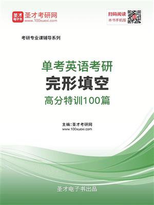《单考英语考研完形填空高分特训100篇》是由圣才考研网组织人员精心编写而成的,本书旨在帮助考生全面提高英语水平和完形填空应试能力。本书归纳“单考英语”完形填空常考题型,并提出应试技巧,以帮助考生提高英语水平,在考试时达到事半功倍的效果。本书精选100篇完形填空的文章,根据常考的题材,将其分为文化教育类、社会生活类、商业经济类、科普科技类和政治法律类。每一类又按照难易程度,分为基础篇、标准篇、能力篇,循序渐进地提高英语水平。本书的每篇练习都给出了文章字数供考生参考,而且大部分的练习后面还附有文章大意,重点、难点词汇,方便考生快速领略文章意思,扩大词汇量。本书中的解析详尽,思路明晰,讲解深入浅出,具有较强的指导性。