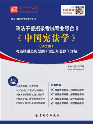 本书特别适用于参加政法干警招录考试的考生。本书严格遵循《政法干警招录培养体制改革试点教育入学考试专业综合II考试大纲》对“中国宪法学”(硕士类)的考查要求,共分为5章,即宪法的基本理论、宪法的变迁、国家基本制度、公民的基本权利义务以及国家机构。每章都由两部分组成:第一部分为考点精讲,梳理核心知识点,建立系统而准确的知识脉络,方便备考者记忆。第二部分为典型题(含历年真题)详解,有针对性地精选了近年来政法干警招录考试的历年真题及典型模拟题,并作出了详尽解析,对考生掌握命题人的出题思路、形成良好的思维方式大有裨益;另外我们还精选了大量典型例题,也给出了解析,这对备考者巩固知识点,提升解题技巧,掌握未来考试方向大有帮助和启发。