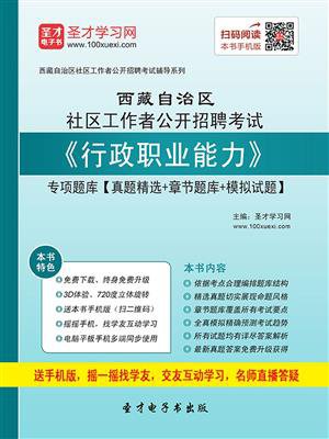 本书特别适用于参加西藏自治区社区工作者公开招聘考试的考生。本书是详解西藏自治区社区工作者公开招聘考试《行政职业能力》的题库,包括真题精选、章节题库和模拟试题三大部分。具体如下:第一部分为真题精选。社区工作者公开招聘考试是公开招聘社会人员和毕业学生到社区工作的考试,考试时间基本不固定,招聘人数根据具体情况而定,真题搜寻难度大。本书选取具有代表性,能体现考试趋势的最新真题,并给出了详尽的解析,供学员参考。第二部分为章节题库。依据各个地方或单位的招考公告(或大纲)以及历年真题的命题特点合理安排章节,共分为3章,基本每道习题都有详尽的解析,涵盖考试主要知识点。第三部分为模拟试题。根据历年考试真题的命题规律及热门考点进行考前模拟,其试题风格与社区工作者公开招聘考试真题一样。通过模拟试题的练习,学员既可以用来检测学习该考试科目的效果,又可以用来评估对自己的应试能力。