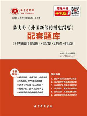 本书是陈力丹《外国新闻传播史纲要》教材的配套题库,具体来说,包括以下几部分内容:第一部分为名校考研真题(视频讲解)。本书收录了北京大学、清华大学、中国人民大学、中国传媒大学等名校的7套考研真题,并由高分考生根据科目考试大纲、考研的参考教材和相关教师的授课讲义等对部分真题进行了详细解答,解题思路清晰、答案翔实,突出难度分析。其中,2011~2013年中国人民大学考研真题含有视频讲解,由圣才名师对真题从难易程度、考查知识点等方面进行全面、细致的解析,帮助考生掌握命题规律和出题特点。第二部分为课后习题及详解。本书参考大量资料对陈力丹《外国新闻传播史纲要》的课(章)后习题进行了详细的分析和解答,并对相关重要知识点进行了延伸和归纳。第三部分为章节题库及详解。严格按照陈力丹《外国新闻传播史纲要》的章目编排,精选与各章内容配套的习题并进行解析,所选试题基本涵盖了每章的考点和难点,特别注重理论联系实际,突显当前热点。第四部分为模拟试题及详解。根据名校历年考研真题的命题规律,仿真名校历年考研真题的难度和风格,精心编写了2套模拟试题,并进行了详细的解答。
