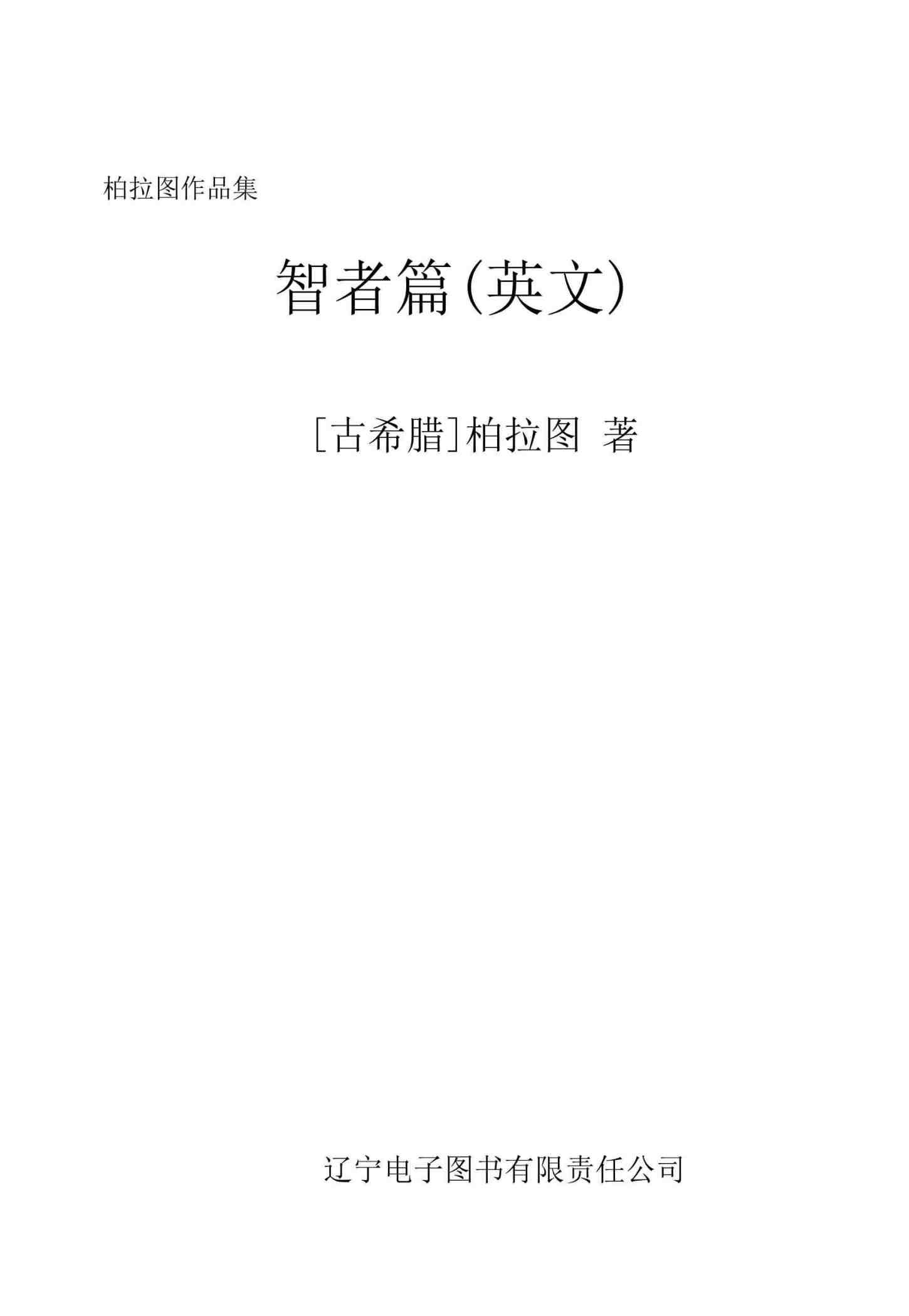 柏拉图作品集?智者篇(英文)1