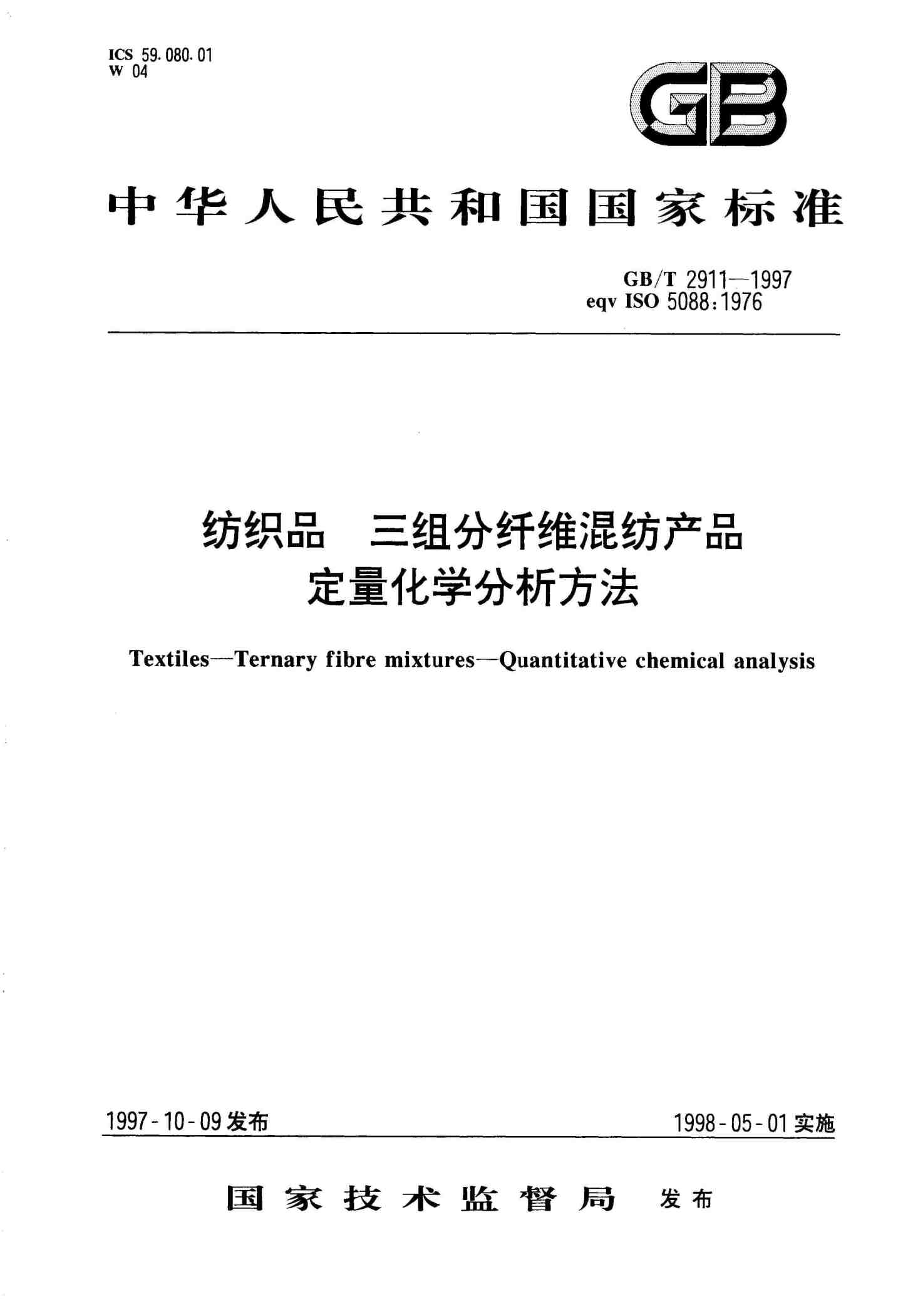 纺织品三组分纤维混纺产品定量化学分析方法