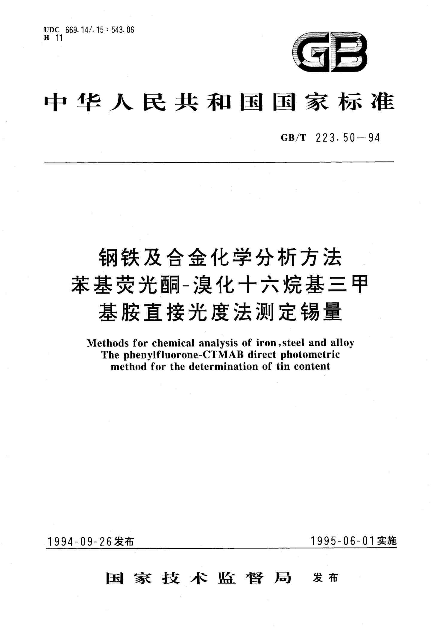 钢铁及合金化学分析方法苯基荧光酮-溴化十六烷基三甲基胺直接光度法测定锡量