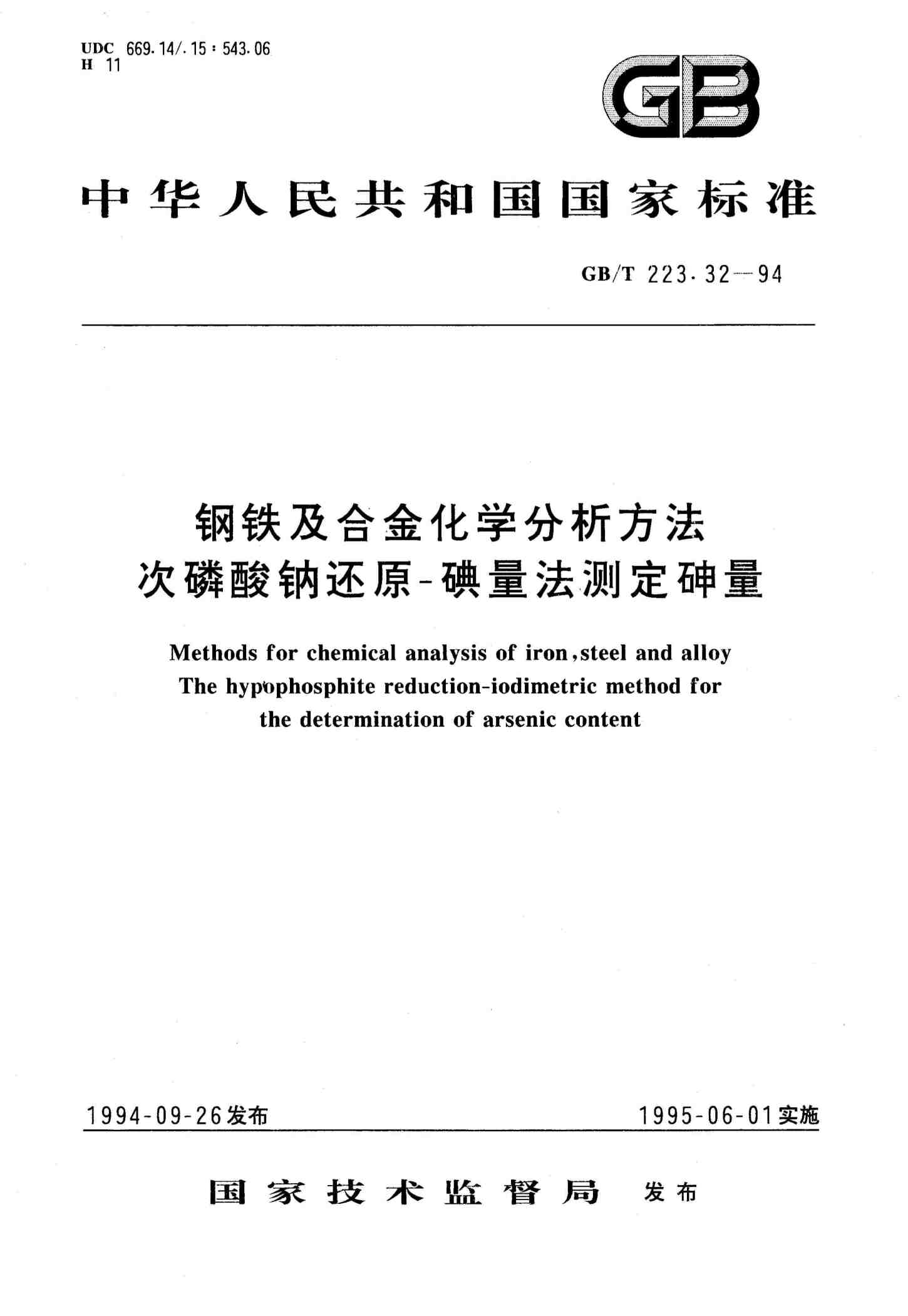 钢铁及合金化学分析方法次磷酸钠还原-碘量法测定砷量