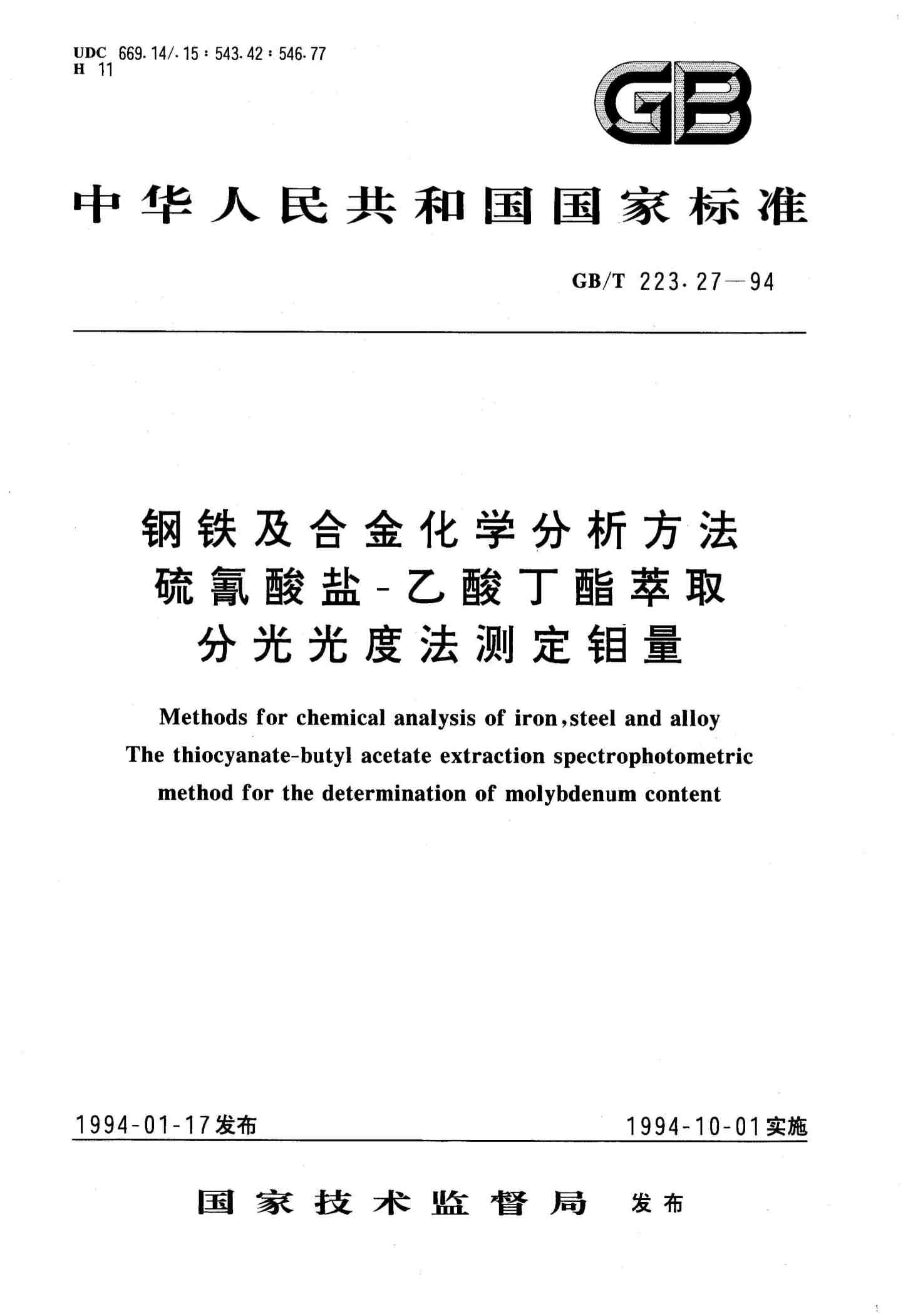 钢铁及合金化学分析方法硫氰酸盐-乙酸丁酯萃取分光光度法测定钼量