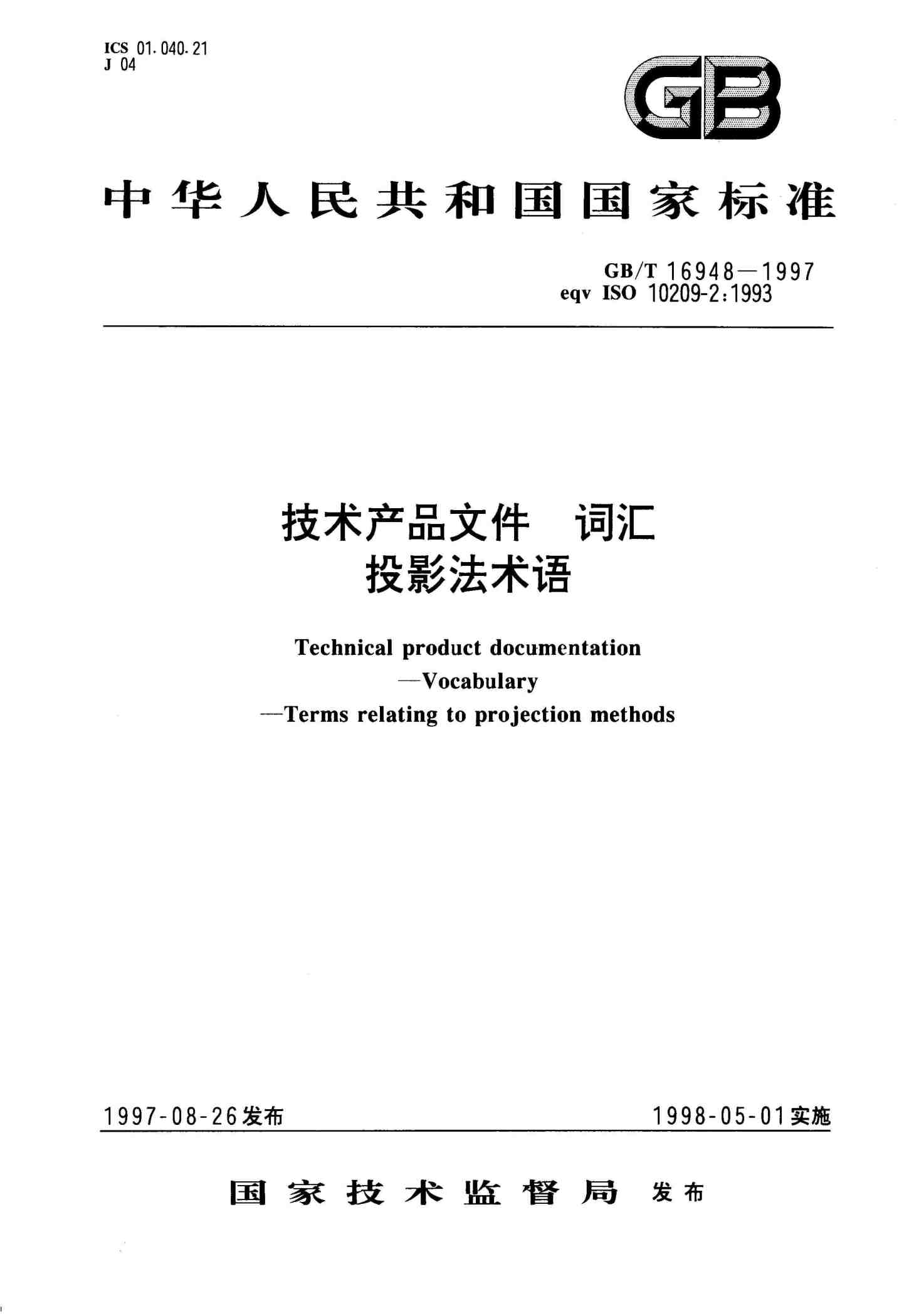 技术产品文件词汇投影法术语