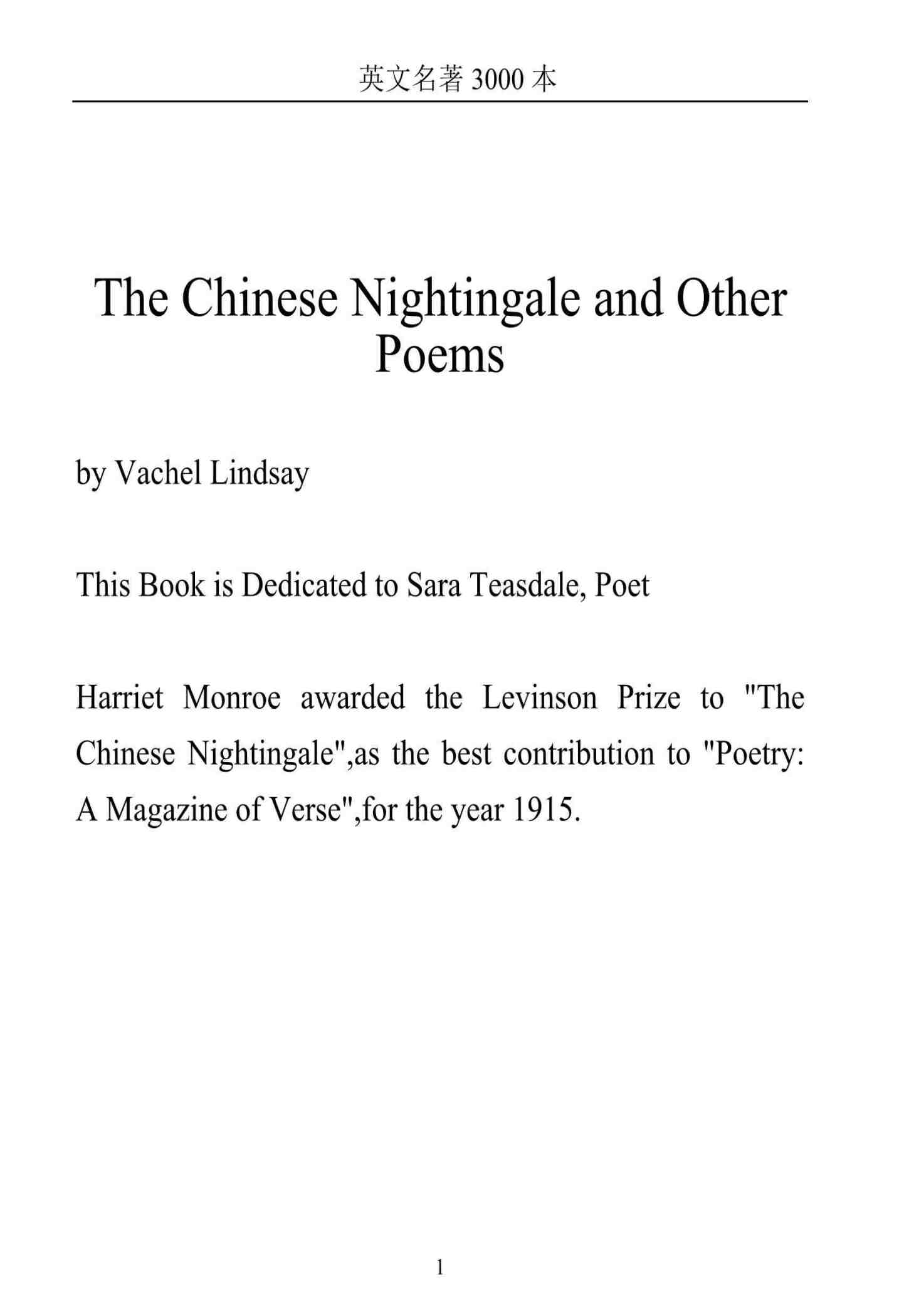 中国夜莺及其他诗歌